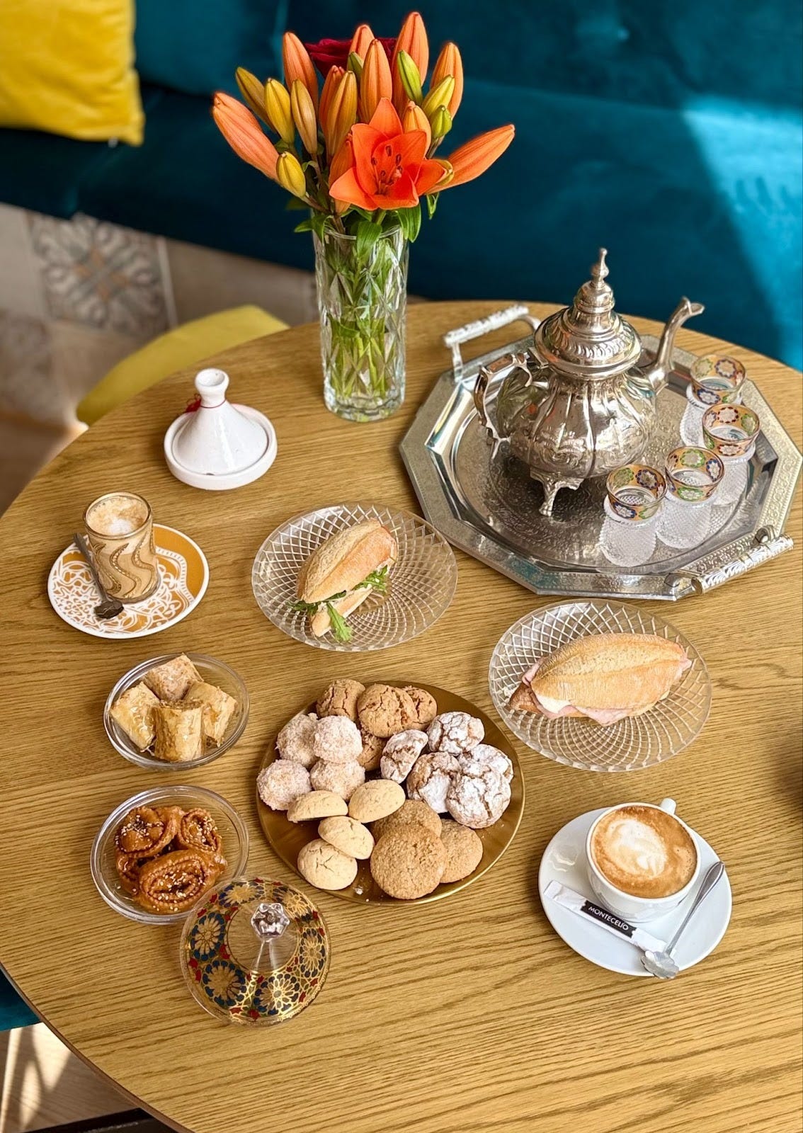 El té se sirve con ceremonia. Los dulces marroquíes son un éxito inesperado. Y luego están esas tostas que María vende con tanto amor y que se han convertido en uno de los platos estrella.